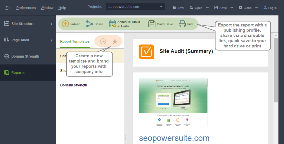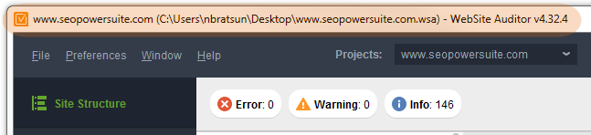 - Open WebSite Auditor. If the site isn't there already, add it as a new project.