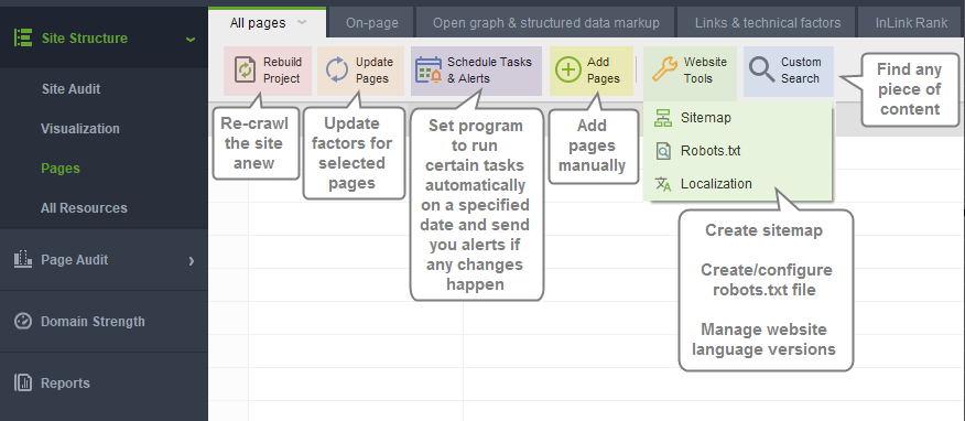 - Navigate to the Site Structure module and click "Rebuild Project" to re-crawl the site.